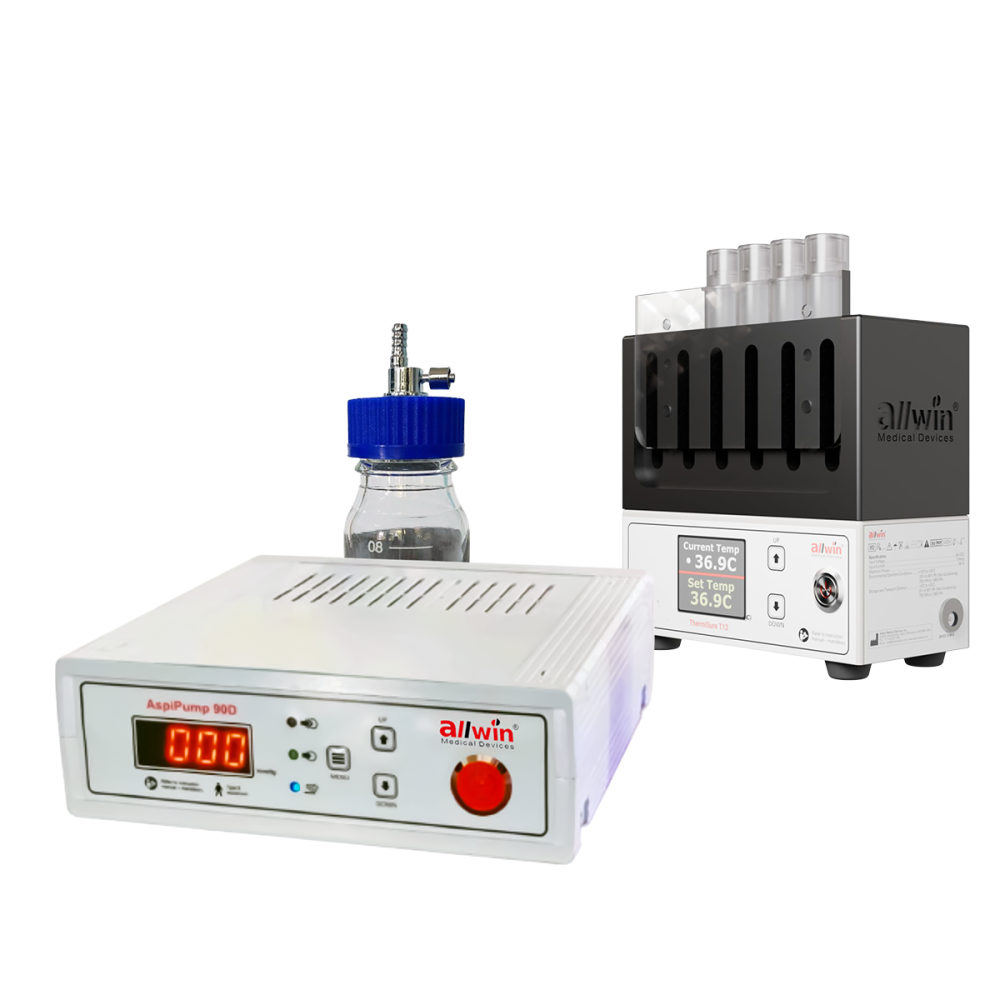 Designed for use in assisted reproduction procedures, the Allwin AspiPump 90D serves the purpose of aspirating egg (ova) through low flow, intermittent vacuum techniques.